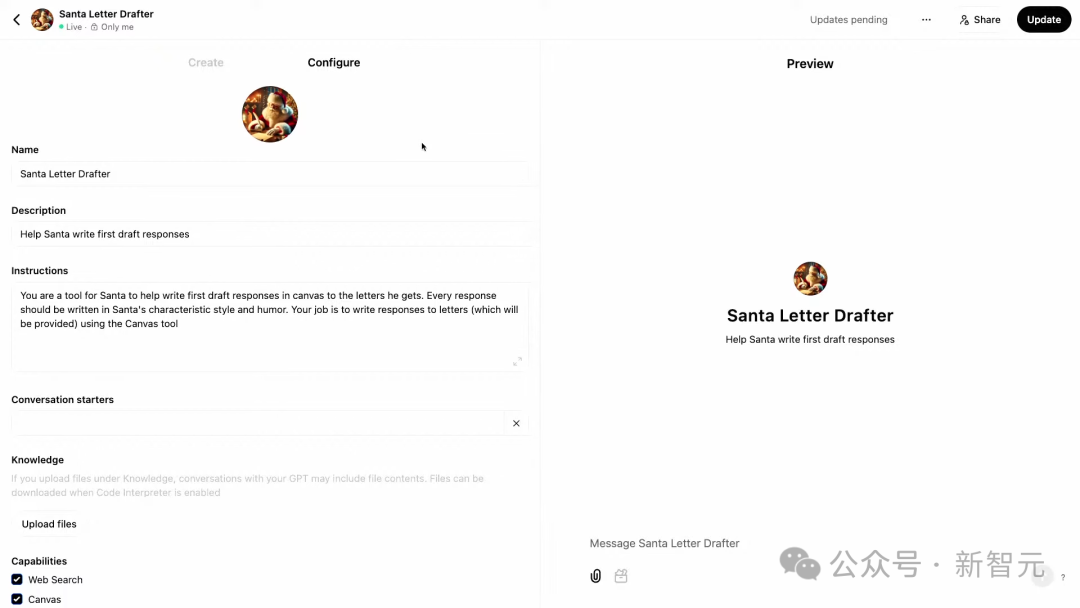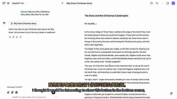 这是在构建定制的「Santa Letter Drafter」时,研究人员便将Canvas放下了自定义指令中。