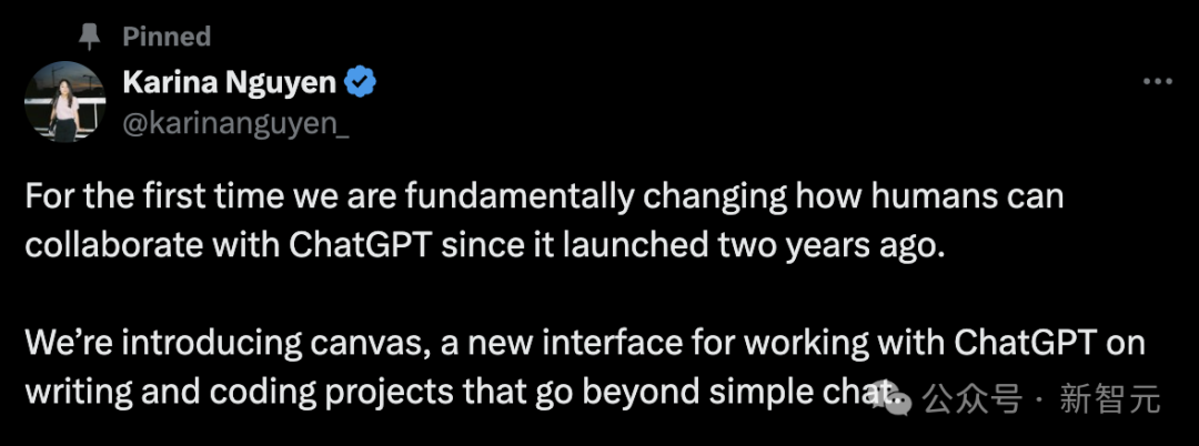 针对Canvas新功能,OpenAI研究员Karina Nguyen做了更多的分享。