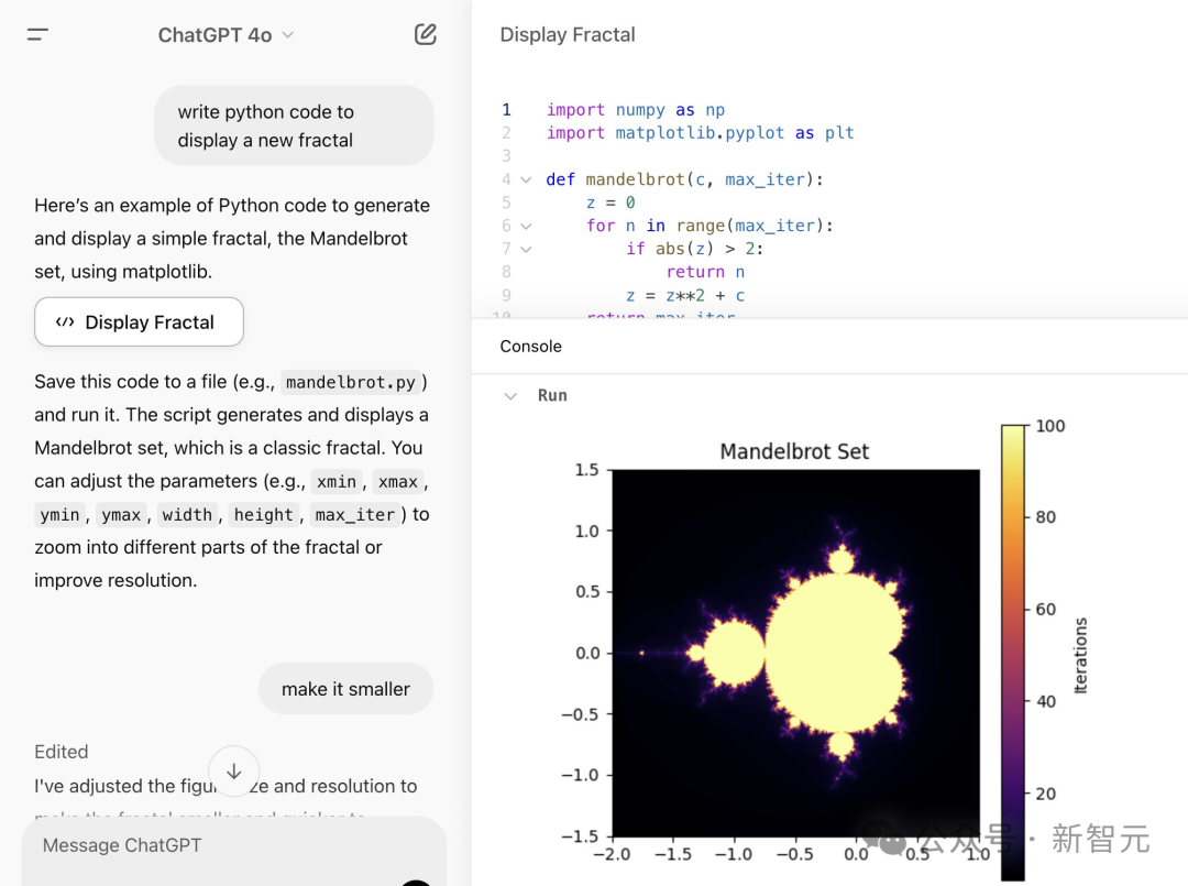 如下,就是ChatGPT写的曼德勃罗分形(Mandelbrot fractal)的Python代码。
