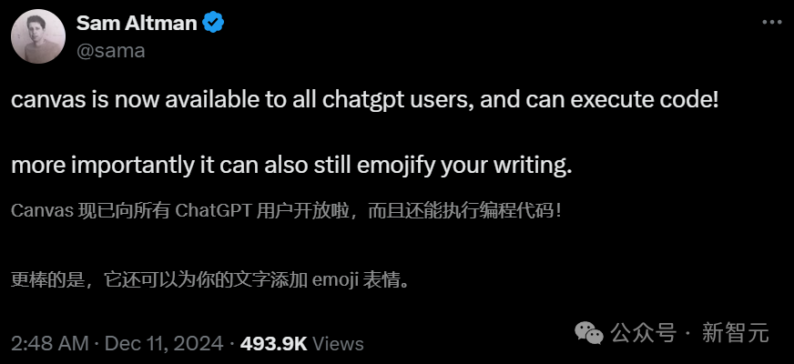奥特曼表示,Canvas不仅能够编码,还可以为文字添加emoji。