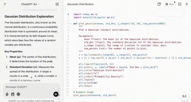 比如,你可以让ChatGPT为你解释数学概念——高斯分布,然后再要求它编写代码。