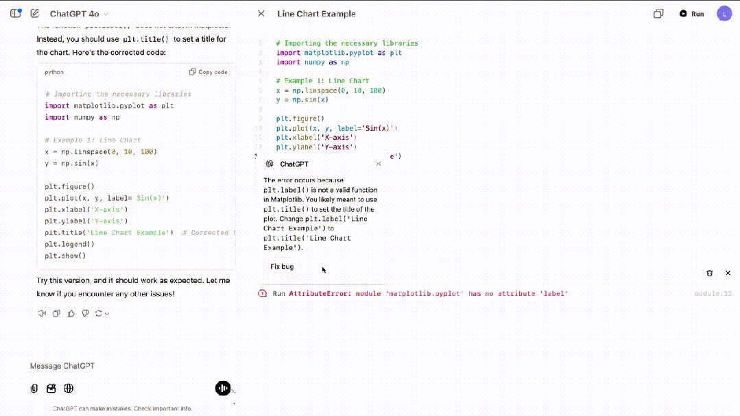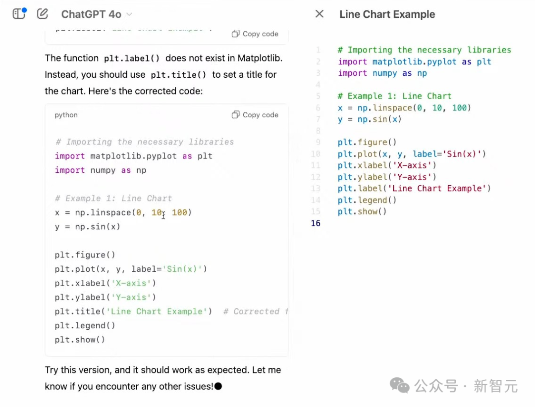 它识别出,「plot.label」在Matplotlib中不存在,随后提供了一个修正代码示例。
