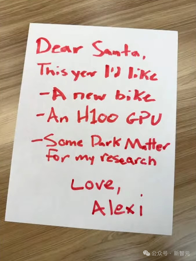 可以看到,Alexi的愿望清单中,一共有三项:一辆全新自行车、一块H100 GPU,还有一些专为研究的暗物质。