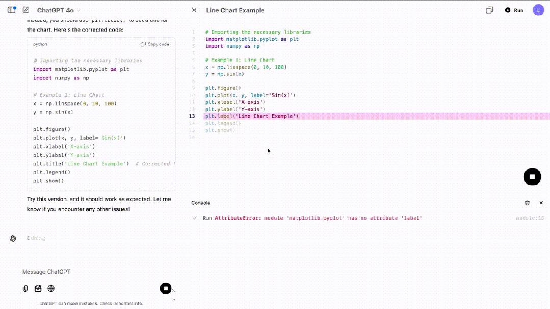 它识别出,「plot.label」在Matplotlib中不存在,随后提供了一个修正代码示例。