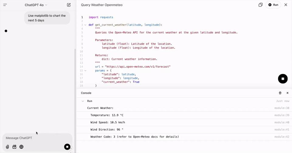 现在,我们可以直接在Canvas中运行Python代码,这样就能看到输出,无论是以文本还是图形的形式。