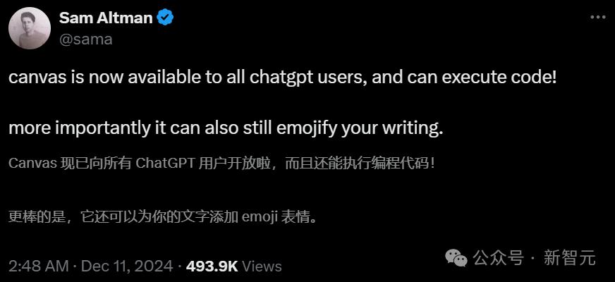 奥特曼表示,Canvas不仅能够编码,还可以为文字添加emoji。