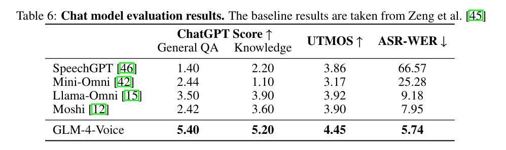 研究团队在基础模型评估与聊天模型评估两方面对 GLM-4-Voice 进行了性能评估。