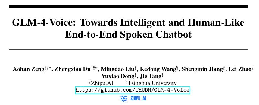 GitHub 地址:https://github.com/THUDM/GLM-4-Voice
