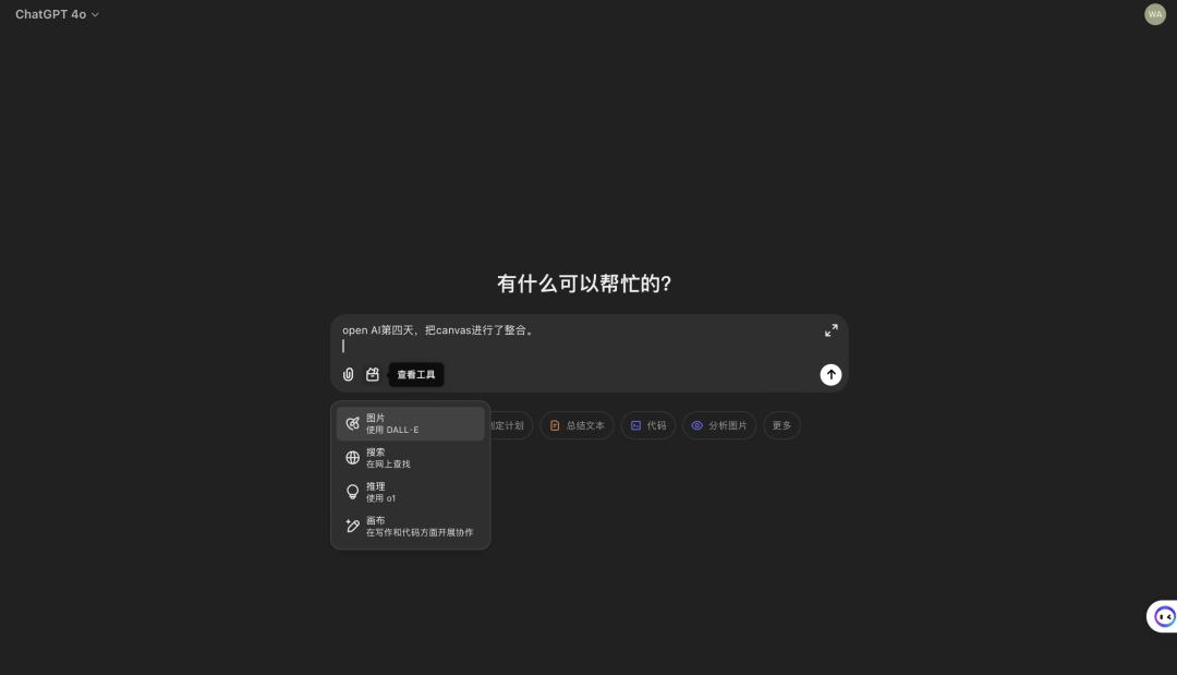 之前,Canvas的一些功能已经在ChatGPT里展示过,但那时它是单独的一个模型。现在,它和其他模型融合在一起了。