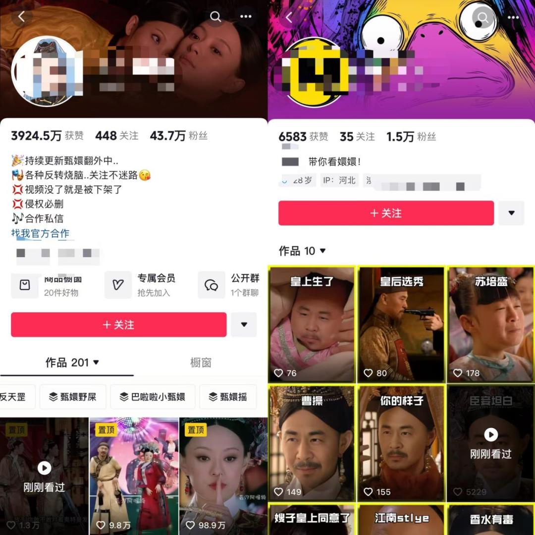 “现在刷到甄嬛传相关短视频都挺提心吊胆的,因为你永远都不知道下一秒会发生什么,可能是甄嬛掏枪,也可能是华妃骑摩托,还可能是眉庄吐舌头。”