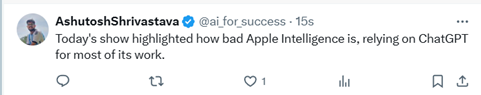 今天的节目突出了苹果智能的不足之处,大部分工作都依赖于ChatGPT。