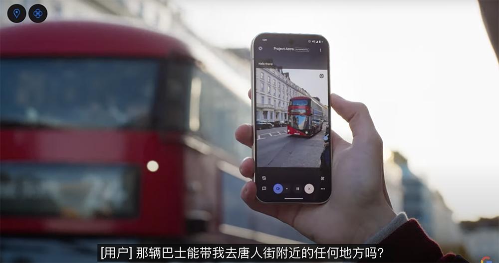 当偶遇一辆公交车,测试者问AI助手“那辆公交车能带我去唐人街附近吗?”AI助手会回复说:“是的,24路公交车经过莱斯特广场,离唐人街很近。”测试者继续追问路上有什么路标,AI助手也作出流利地回复:“你可能遇到的著名地标是威斯敏斯特大教堂、大本钟和特拉法加广场。”