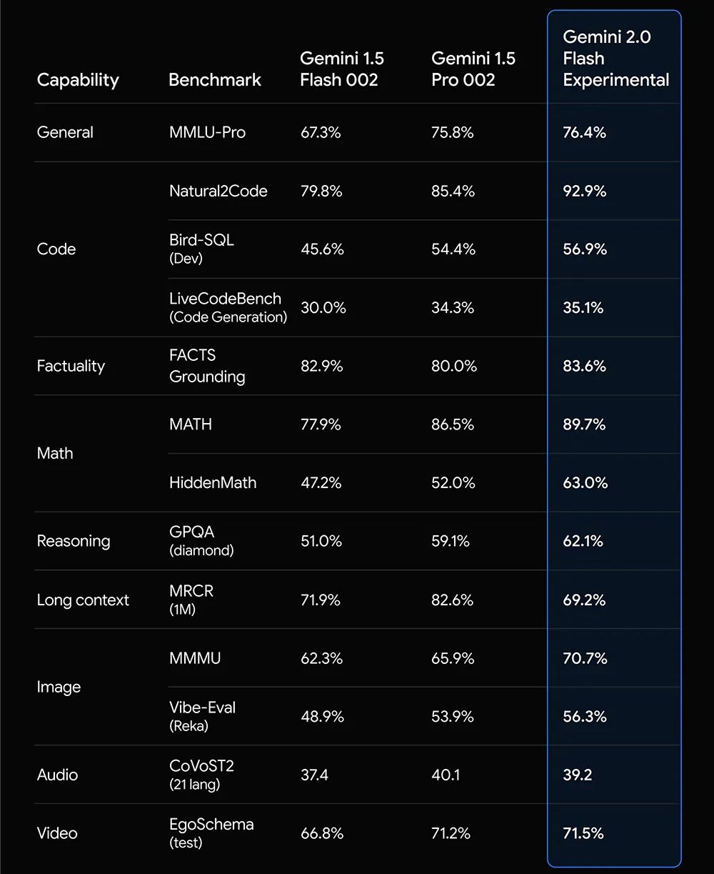 谷歌的官方博客显示,Gemini 2.0 Flash在关键基准测试中的速度是1.5 Pro的两倍。