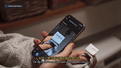 小哥让Astra读取衣服上的洗涤标签,Astra马上给出洗衣建议。