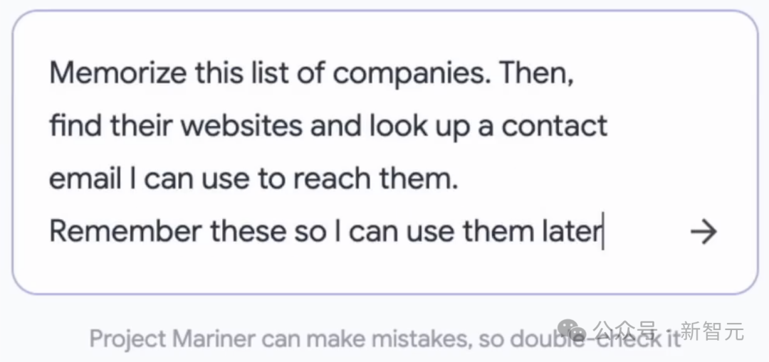 输入提示「记住这份公司的名单,然后,找到他们的网站,并查找我可以联系到他们的邮箱。记住这些方便我日后使用」