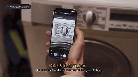 接着他又将手机镜头转向洗衣机,询问Astra该如何操作洗衣机,Astra很快地提供了指导。