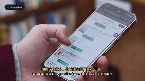 研究小哥还测试了一下Astra给朋友挑礼物的能力。他在手机里浏览了一遍朋友的书单,让Astra读屏识别,并总结出这个朋友的阅读品味。