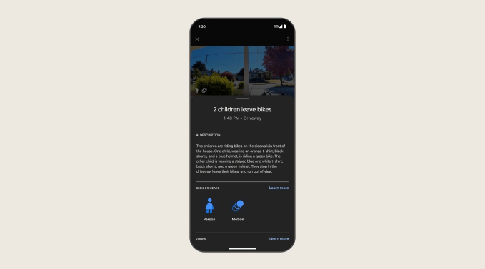 Gemini即将实现Nest设备安全摄像头视频总结。图片来源:Google