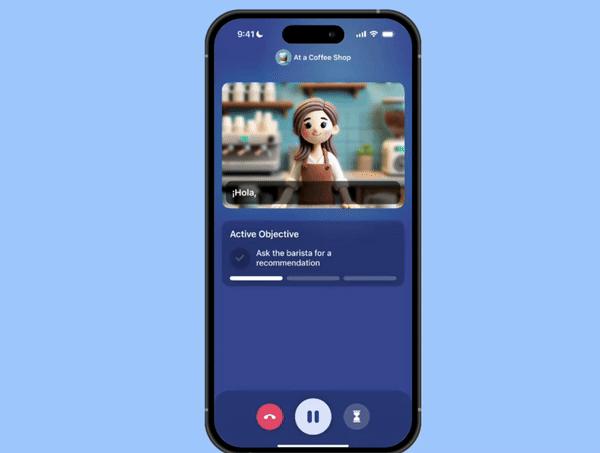 今年10月,在OpenAI 的Realtime API提供的技术支持下,Speak重构的产品,最新功能之一 Live Roleplays(实时角色扮演)正式推出。它以语言电话的形式让用户可以实时与AI沟通,系统可以根据用户的熟练程度自动调整 AI 语音的句型和词汇量。此外,该功能还会显示学习目标和语言提示,让学习过程不卡壳。