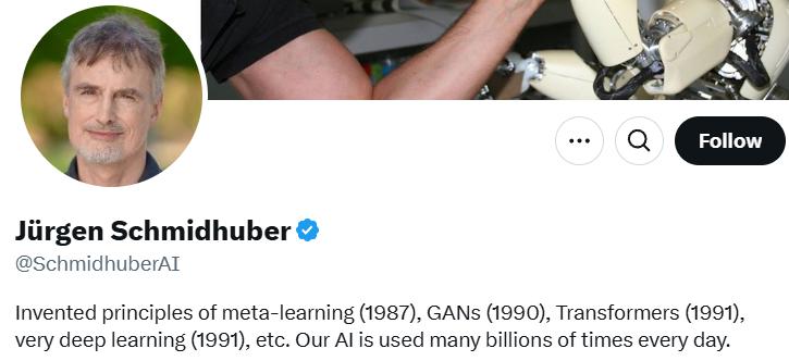 阿卜杜拉国王科技大学 (KAUST) 人工智能研究所所长、瑞士人工智能实验室IDSIA科学主任、LSTM作者、现代人工智能之父Jürgen Schmidhube也参与到这场推特大战之中。