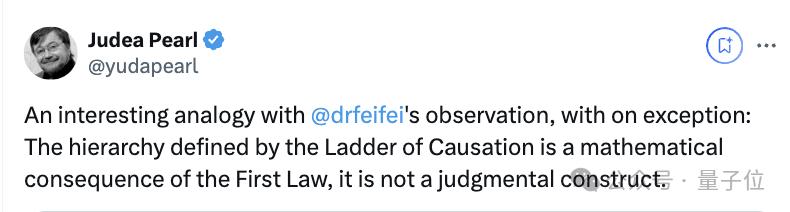 (这里插一嘴,Judea Pearl本人还特意纠正了一下,他表示因果关系阶梯所定义的等级是第一定律的数学结果,而不是一种判断性的建构。)