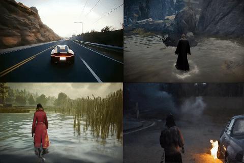 此外,还看到模型生成的第一人称视角的游戏画面,不得不说,这个视角有很足的游戏沉浸感。