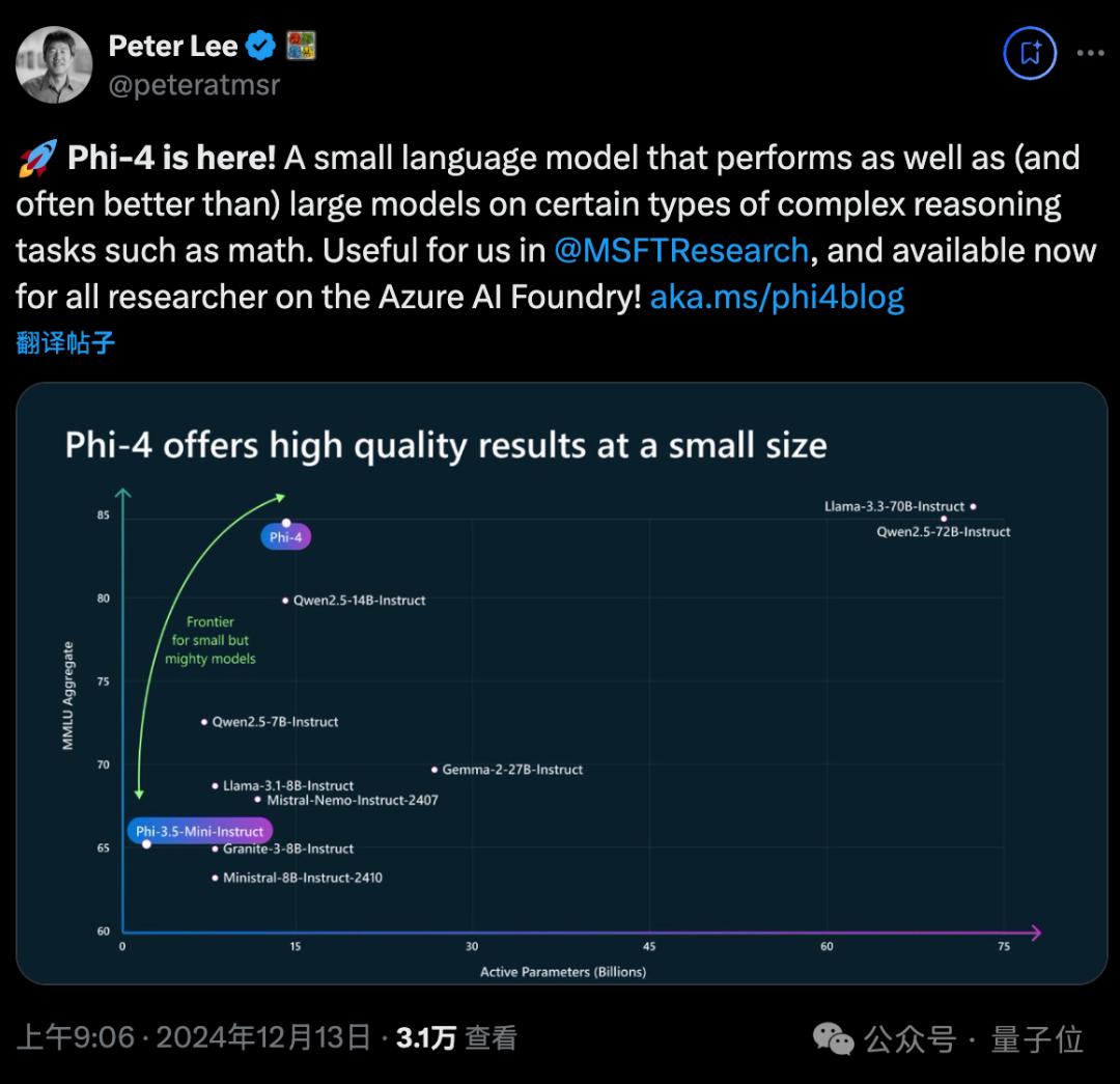 OpenAI谷歌天天刷流量,微软也坐不住了,推出最新小模型Phi-4。