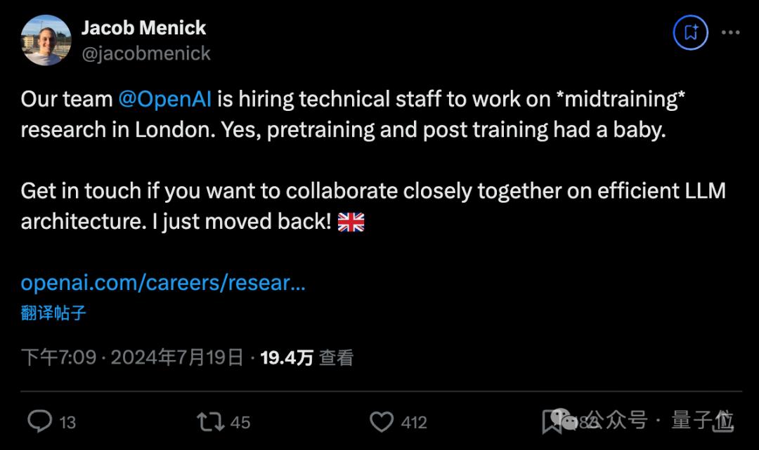 不过midtraining并不是微软首次提出,早在7月份,OpenAI就已经开始为伦敦的midtraining团队招人了。
