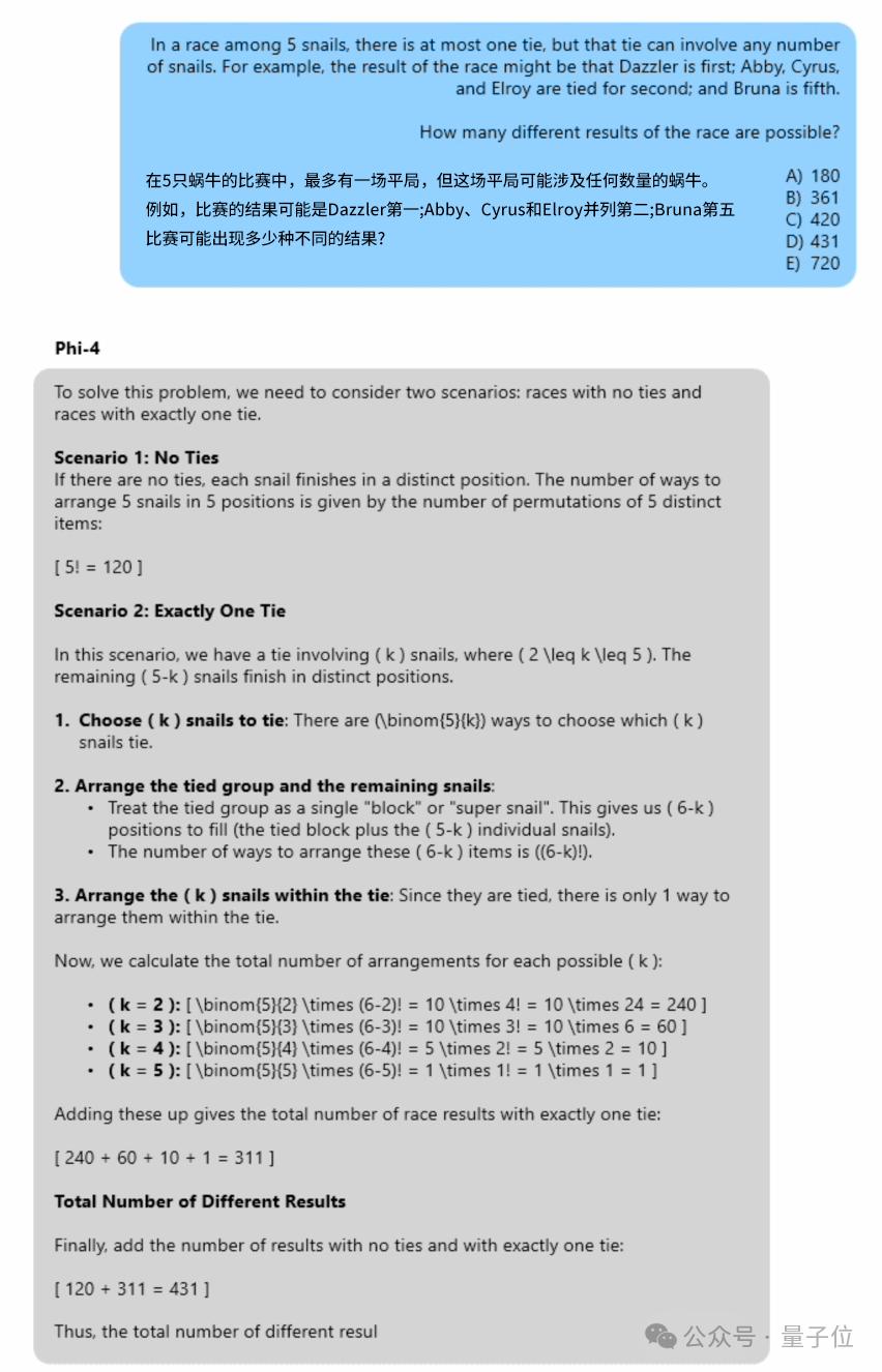 Phi-4非常有条理地考虑了各种可能出现的情况,并计算出了正确答案。