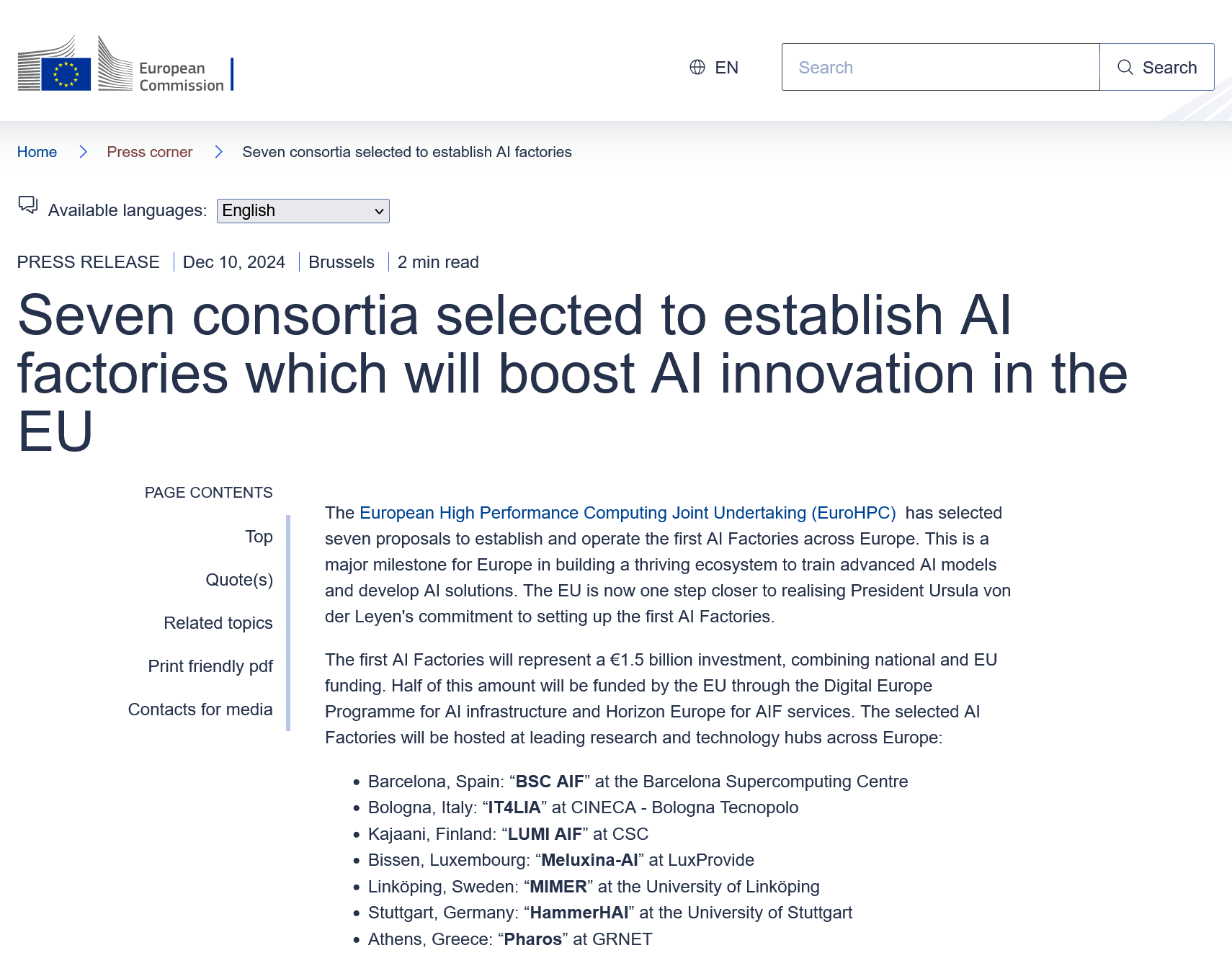 今年早些时候,法国人工智能希望之星Mistral与微软达成协议,将使用美国科技公司的超级计算能力。 一些人认为这足以表明欧洲在人工智能竞赛中已经落后。欧盟委员会希望通过一项雄心勃勃的计划来纠正这种情况。
