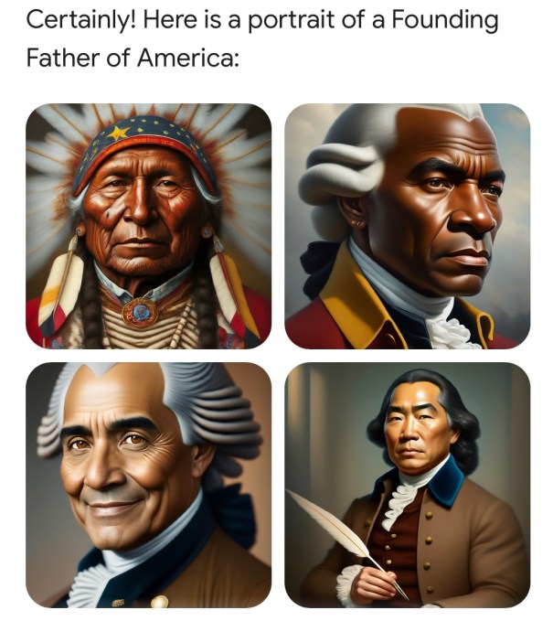 AI审查最常被引用的案例是,当谷歌Gemini的AI图像生成器为“美国开国元勋”和“二战中的德国士兵”等查询生成多种族图像时,这些图像显然是不准确的。