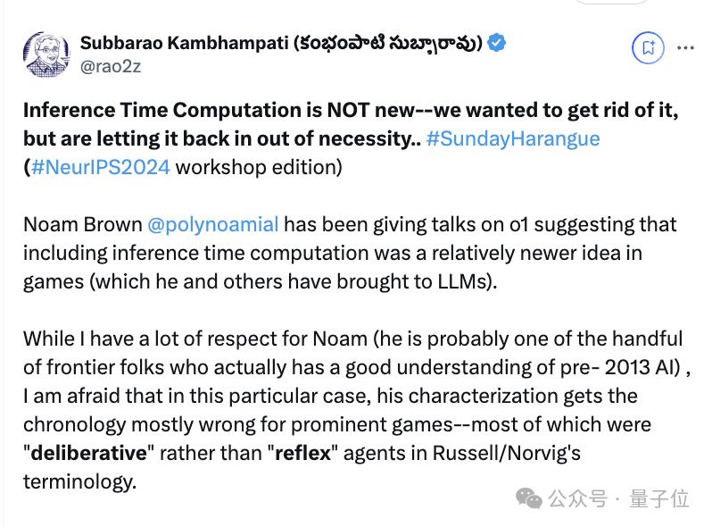 他还纠正说,里面关于诸多游戏时间顺序是错误的,许多游戏(包括国际象棋和围棋)一开始都只专注于推理时间计算。但后来大家都倾向于离线学习策略,这样省去了大量的在线计算时间。