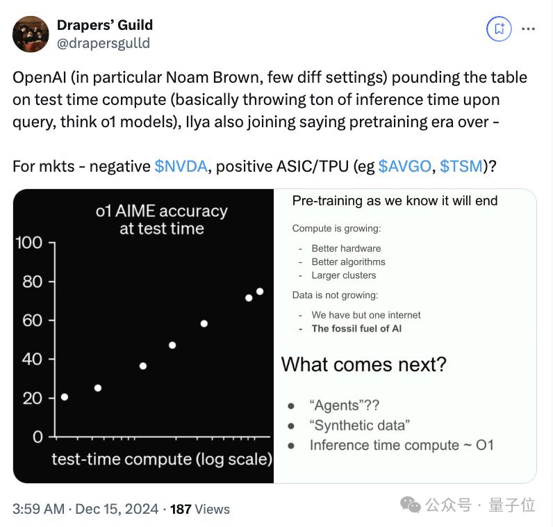 如果再结合昨天Ilya谈到「预训练时代即将终结」。那么对于市场来说,这一波可不是利好英伟达了(Doge)。