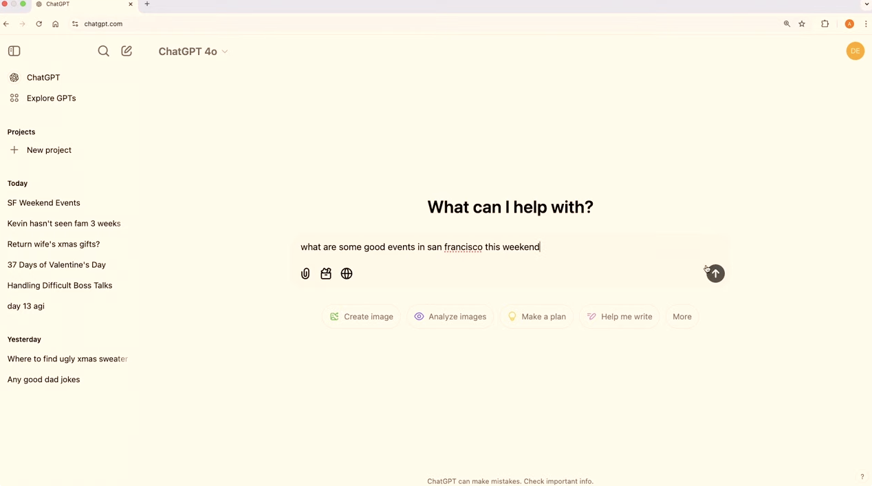 比如说,你打算去瑞士度假,在 ChatGPT 帮助下,它能用流畅的语音告诉你苏黎世在某一周有什么活动。