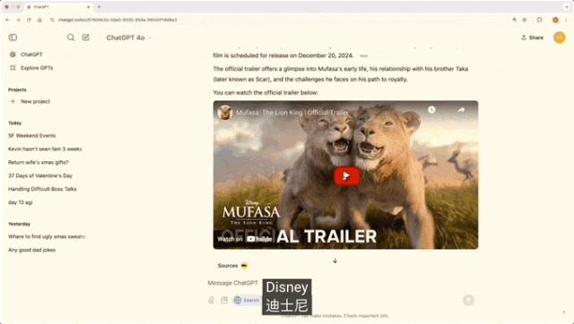 比如来源于油管的视频,可以在ChatGPT页面直接播放那种:
