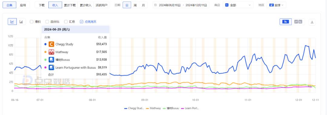 近半年Cehgg旗下在线产品收入情况|图源点点数据