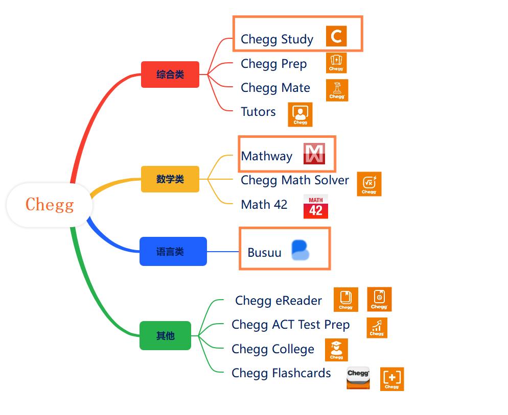Chegg 旗下产品,大多产品功能已并入 Chegg Study 中,目前在线仅剩 Chegg Study、Mathway和Busuu | 来源 Sensor Tower、点点数据