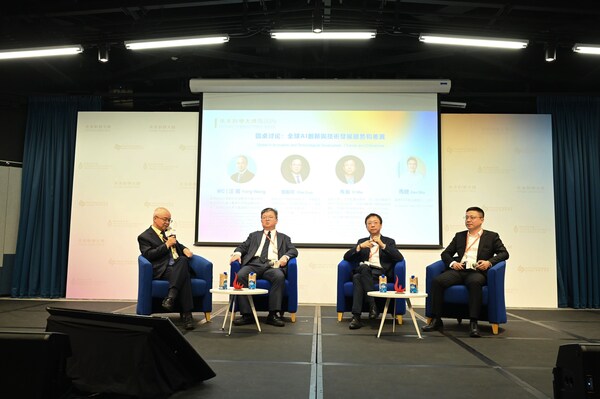 未来论坛现场,马健博士与香港科技大学副校长兼数学系讲座教授汪扬,香港科技大学首席副校长郭毅可,香港大学人工智能讲座教授马毅等嘉宾共同探讨 "全球 AI 创新与技术发展趋势和差异",以智慧和共识搭建思想策源交流平台,现场气氛热烈,嘉宾们精彩观点频出。