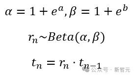 由于单峰的Beta分布要求α>1且β>1,研究人员对输出进行了重参数化,使其预测两个实数a和b,并通过如下公式确定对应的Beta分布,并采样下一步的扩散时间。