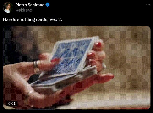 看看Veo 2在双手细节的生成,堪称极致。
