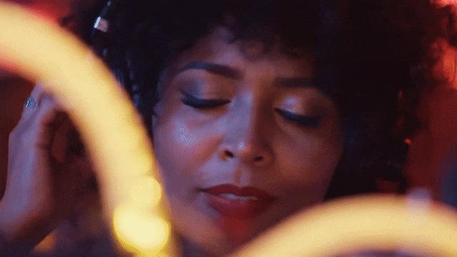 一幅亚洲女性的肖像,背景是幽绿的霓虹灯光,采用浅景深拍摄
