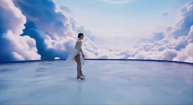 下面这位冰上舞者的双腿,在复杂的前进运动中,出现了变形。