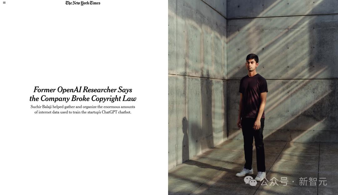 几天前,消息曝出,曾在OpenAI工作四年,指控公司侵犯版权的Suchir Balaji,上月底在旧金山公寓中被发现死亡,年仅26岁。