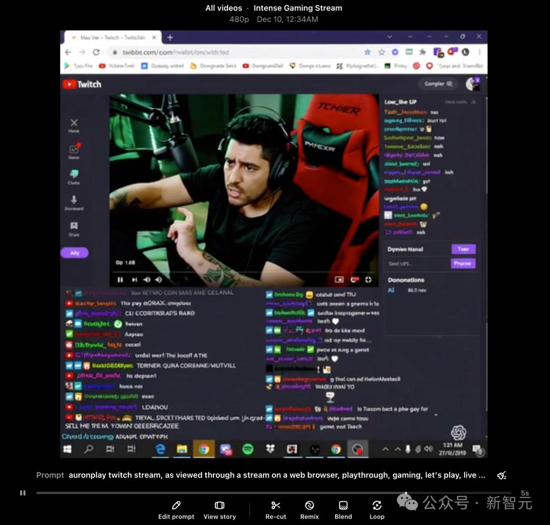 Sora似乎还对Twitch直播的格式有所了解。下面这张视频截图中可以看到,大体的布局和细节都得到了还原。