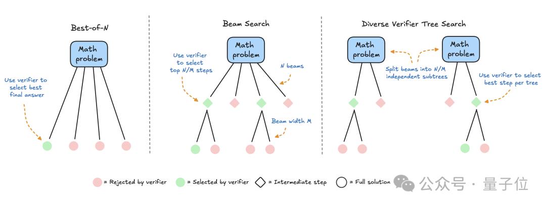 最终,DVTS方法改进了答案的多样性,该方法与Beam Search相比有以下不同之处: