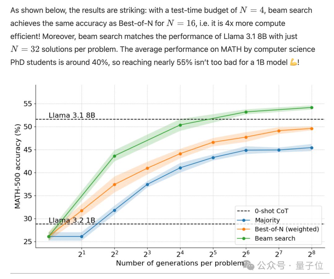 用在小小小模型Llama 1B上,数学分数直接超过8倍大的模型,也超过了计算机科学博士生的平均分数(40%)。
