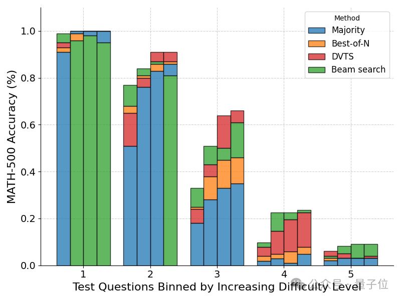 但Beam Search并不是万金油方法,在简单的问题上表现反而不如Best-of-N。