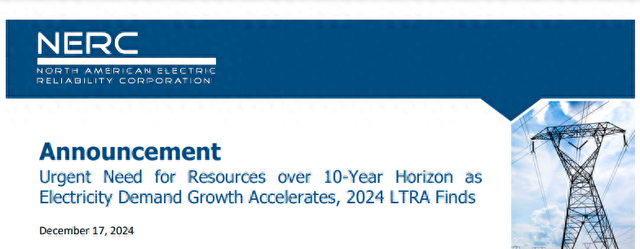 NERC在其2024年长期可靠性评估报告中总结称,“随着需求增长持续飙升以及火力发电机宣布退役计划,未来10年北美大部分地区(大容量电力系统)都将面临越来越大的资源充足性挑战。”