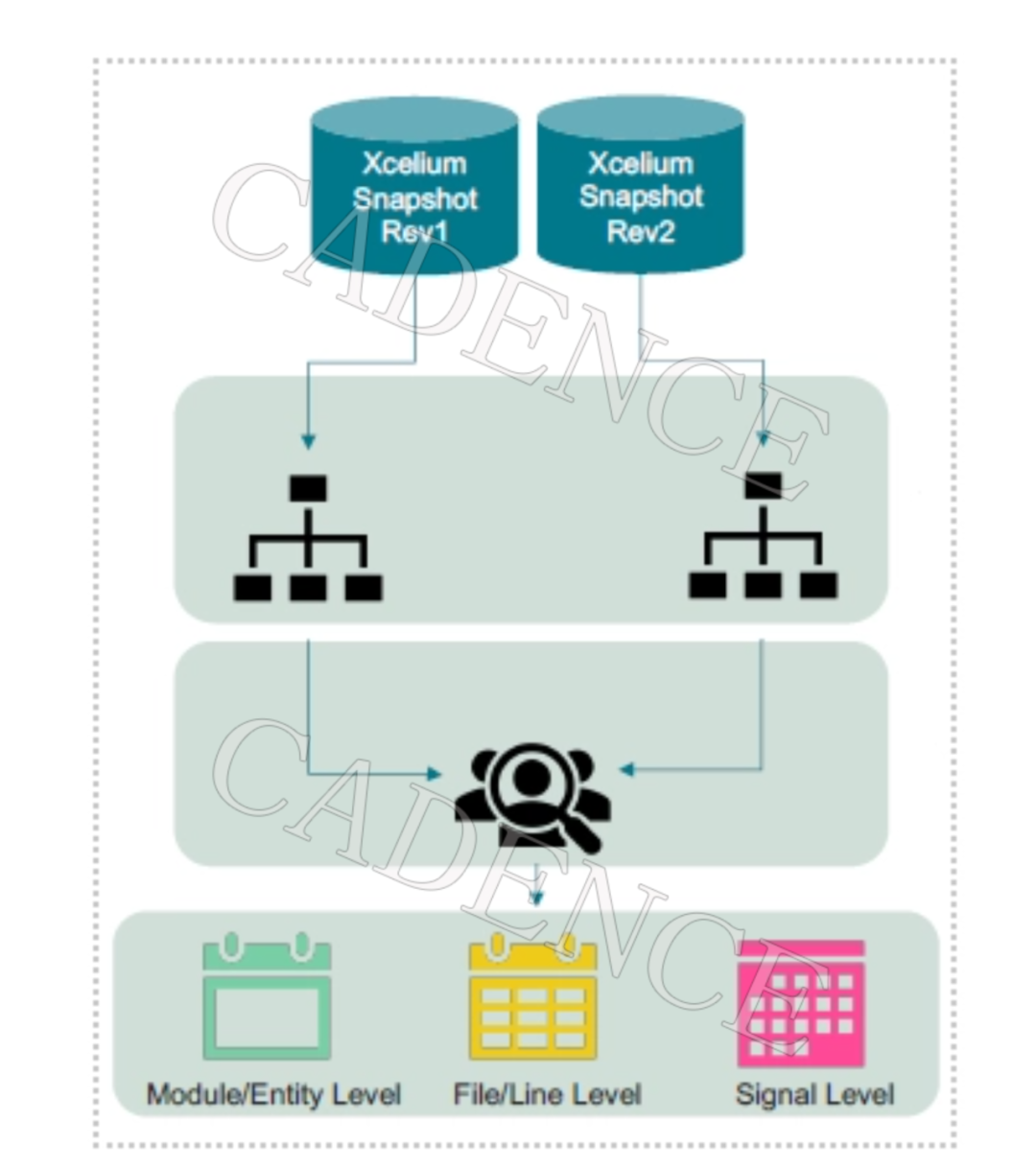 同样,您可以使用 Verisium CodeMiner 对代码上下文进行类似的验证。CodeMiner 可识别不同 Xcelium Snapshot 版本间的语义变化、对其进行排序,并智能忽视那些无关紧要的变化,同时对代码中的重要逻辑变更进行复杂度排序,从而使工程师了解代码中发生的重大变更位置。