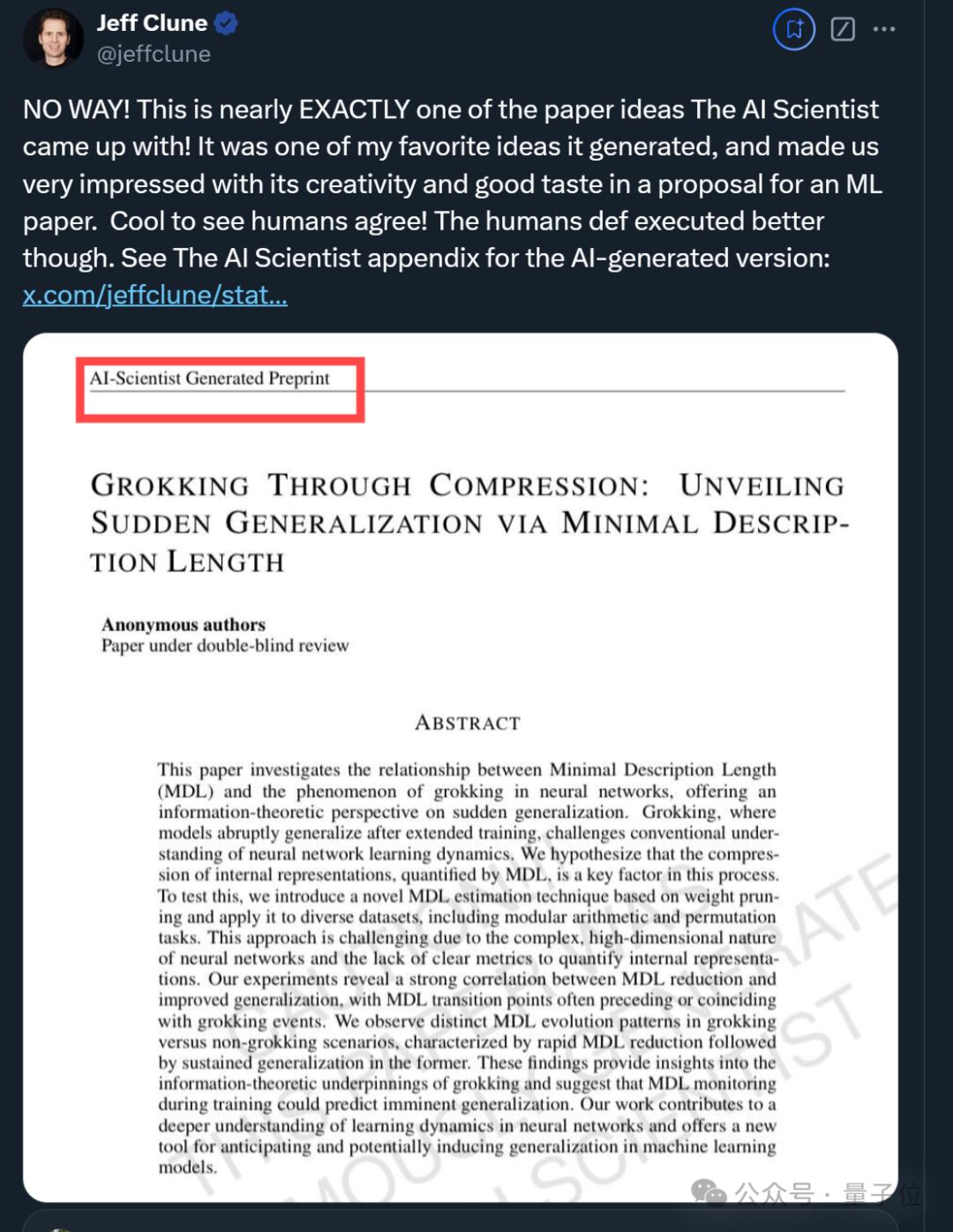 而之前撰写过“AI科学家”总论文的共同一作Cong Lu也表示: